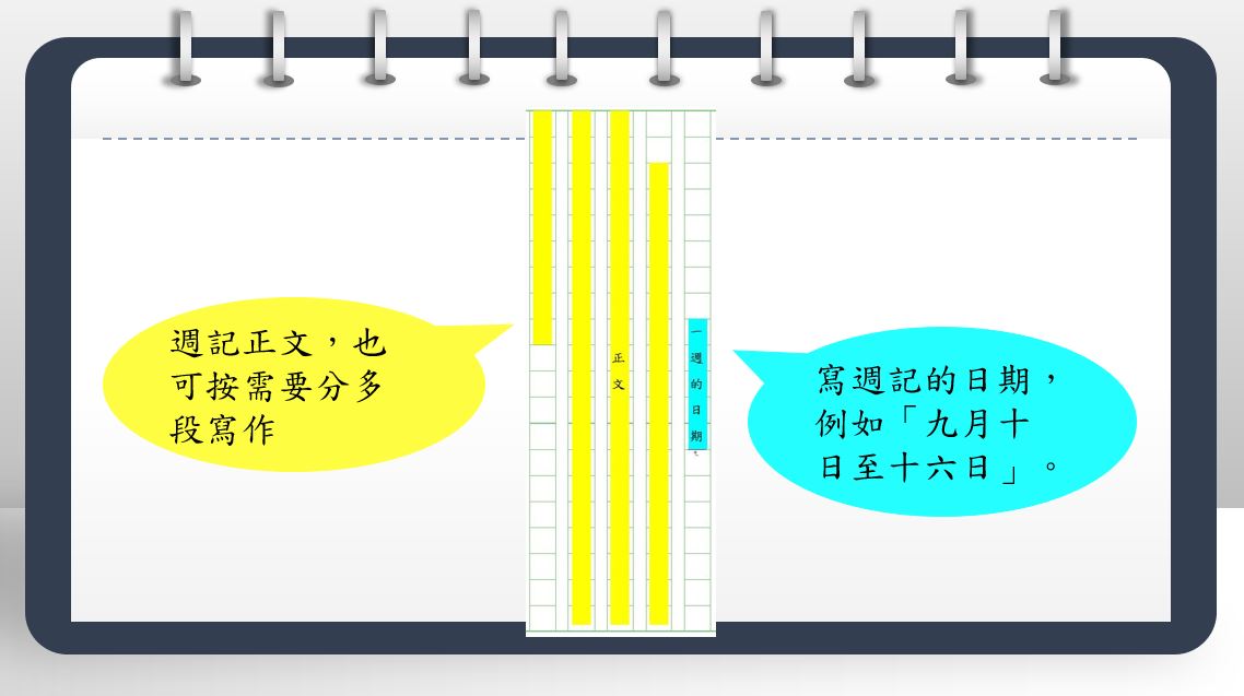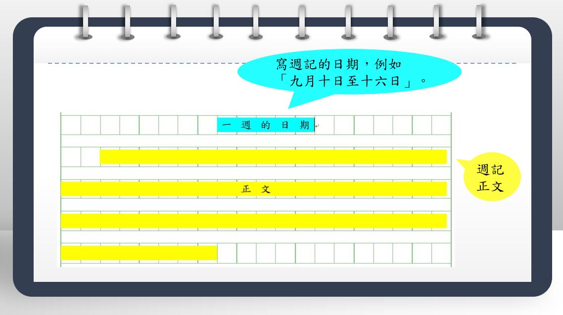 週記主要分為兩個部份,包括了「一週的日期」和「正文」。