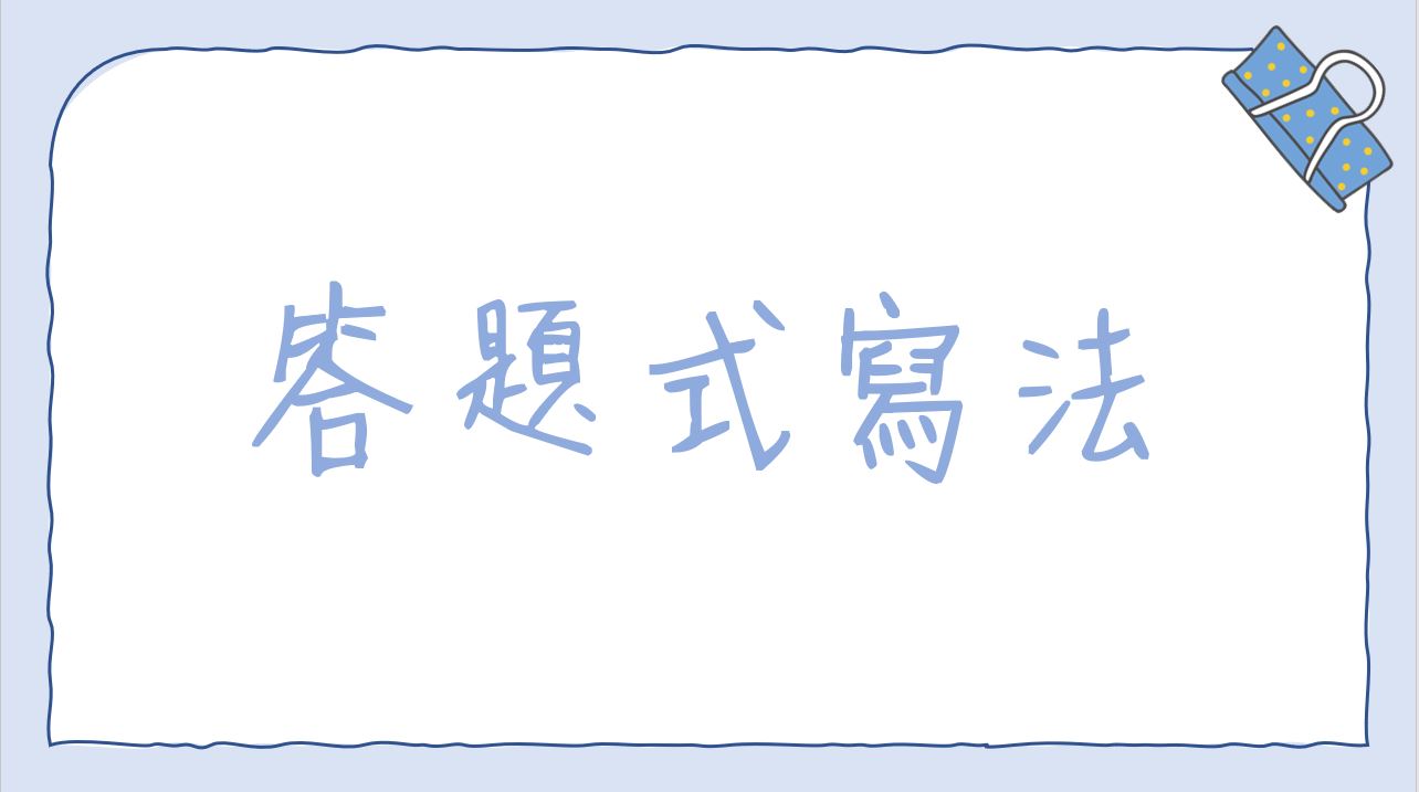 這種「設問」方式就是「自問自答」的模式。透過答題式寫法,我們一邊構思寫作大綱,一邊便能反覆檢視筆下的寫作大綱有沒有不足之處。