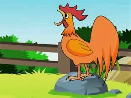 太陽伯伯剛露出了甜蜜的笑臉,一隻隻大公雞有的站在樹墩上,有的站在稻草田中,有的站在石頭上。牠們昂首挺胸,尾巴翹得高高的。張大嘴巴「喔喔喔……」地叫了起來,叫聲很清脆洪亮呢!