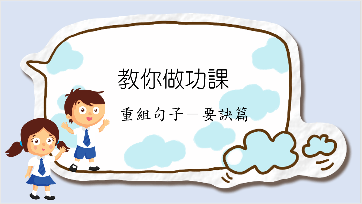 在短片中,尤莉姐姐提供了不同方法和思考角度,希望同學們在面對重組句子時也能多練習使用不同的思維模式。
