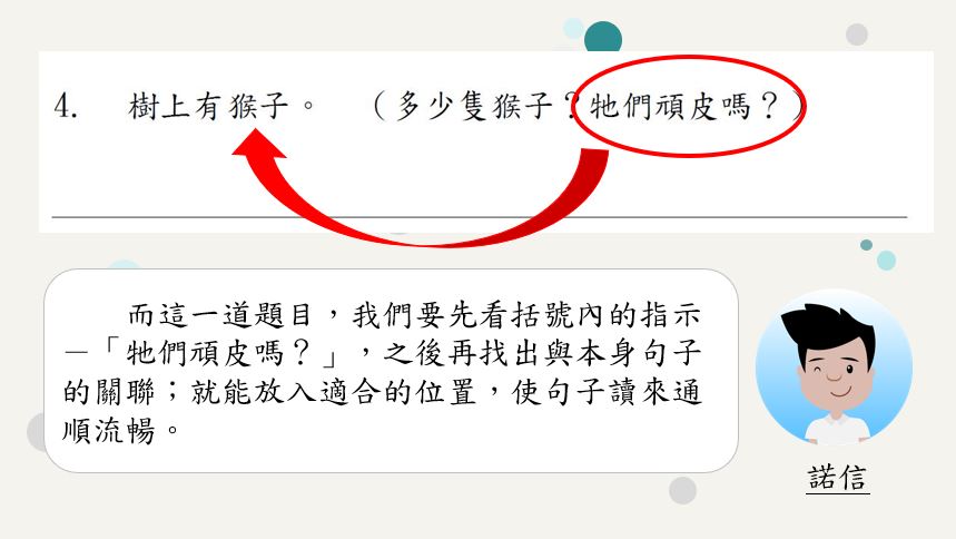 第一,我們要注意括號內的詞語;第二,我們要找出與句子內詞語的關聯;第三,使句子讀來通順流暢。