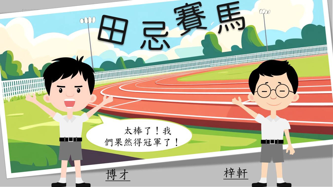 - 恩淇高興地說:「好主意!這次多虧尤莉姐姐講的「田忌賽馬」的故事,讓我們學會用智慧取勝!」